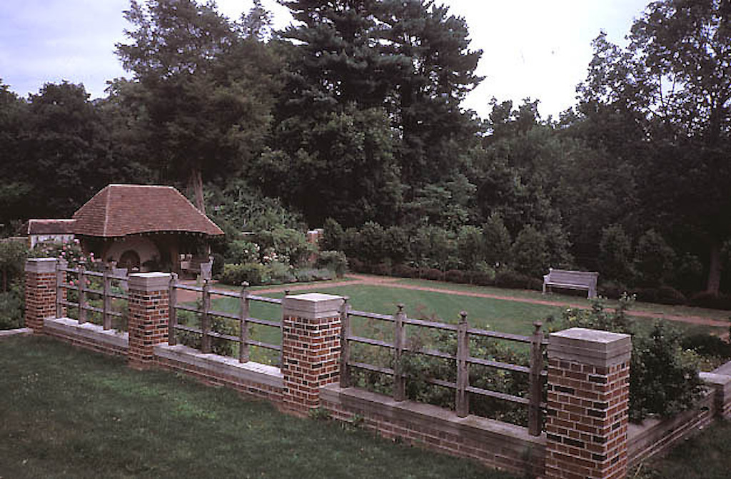 Color slide of leveled garden and wall. Courtesy of Smithsonian Institution, Archives of American Gardens, The Garden Club of America collection. Wood, Barbara B., Photographer. {Topography - Structure} [CT018011]