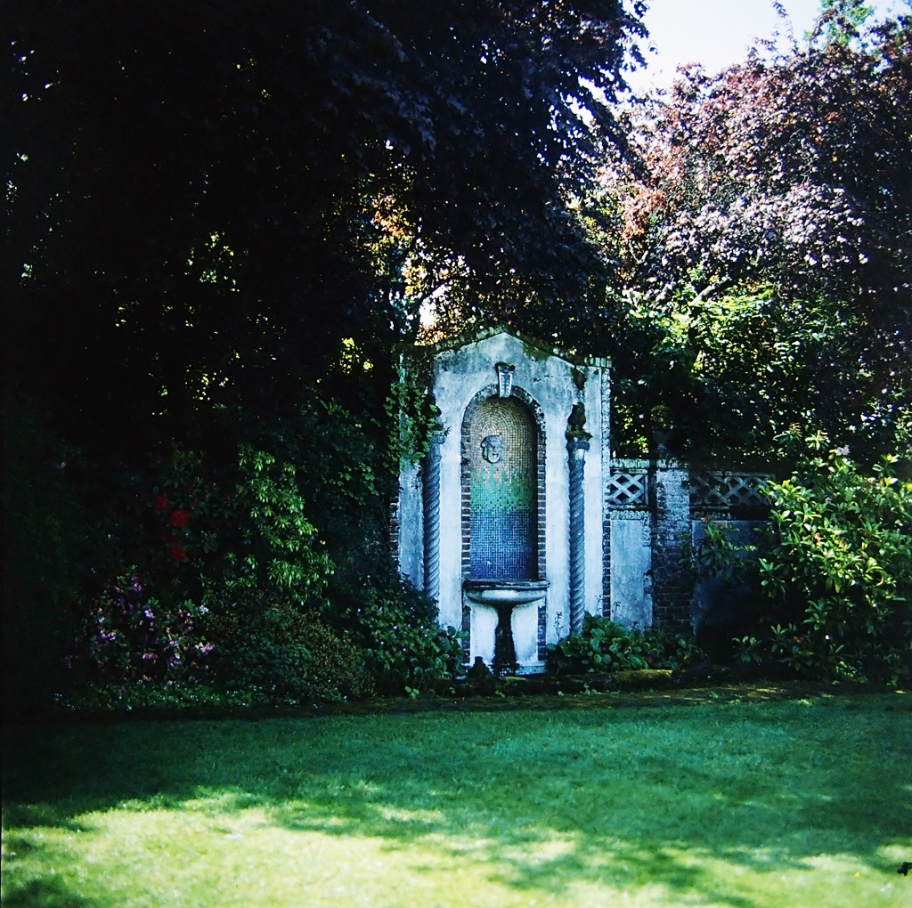 Hoge garden with fountain. {Vegetation - Structure}