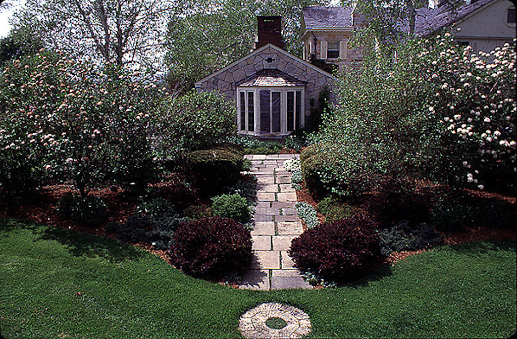 Color photo showing circular driveway and house of Harold Hatch. Courtesy of Smithsonian Institution, Archives of American Gardens, The Garden Club of America collection. Kirby, Melissa, Photographer. {Topography - Vegetation - Circulation - Building} [CT195002]