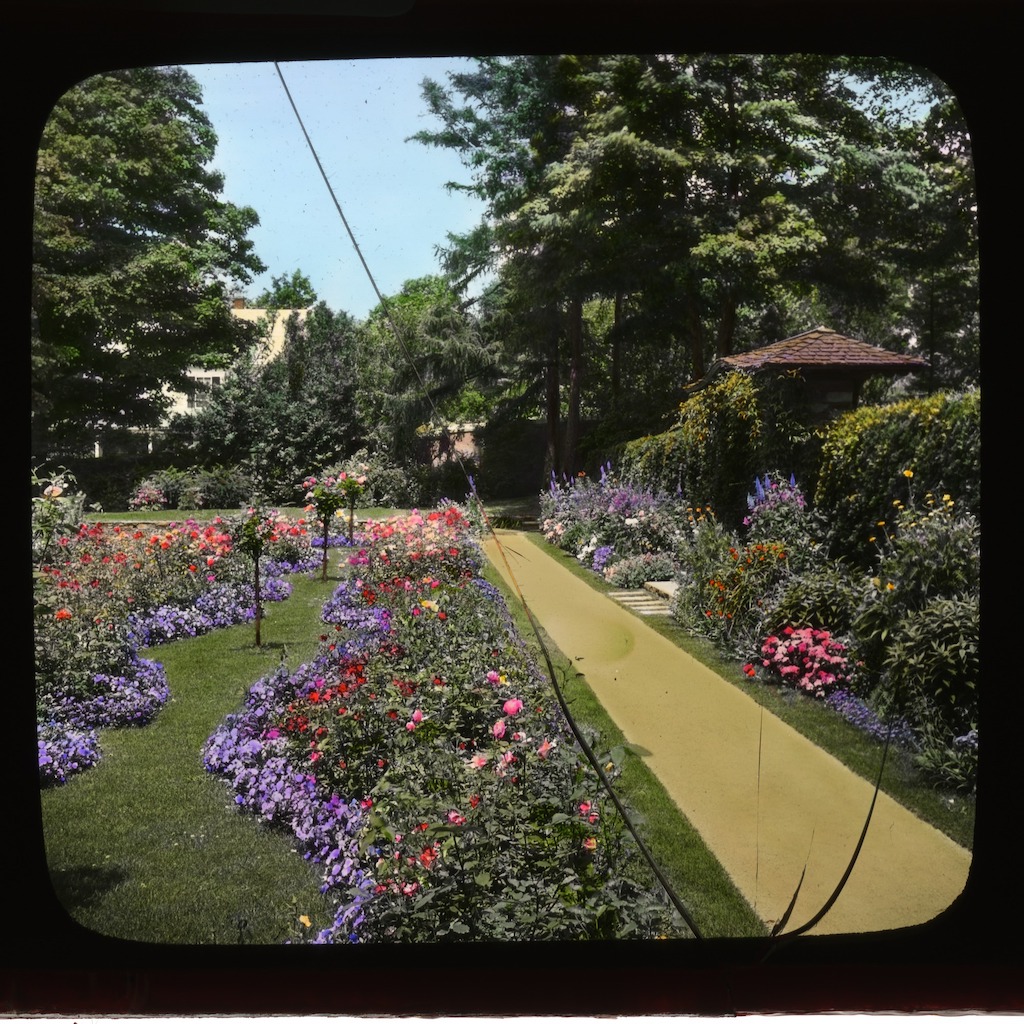 Brown Garden. Hand-colored lantern slide. Courtesy of Smithsonian Institution, Archives of American Gardens, The Garden Club of America collection. {Vegetation - Circulation - Structure} [RI027002]