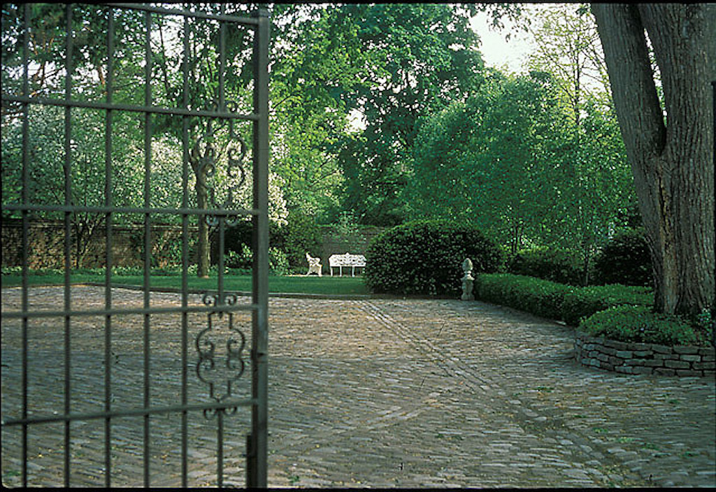 Entry gate and patio. Courtesy of Smithsonian Institution, Archives of American Gardens, The Garden Club of America collection. Photo by Mitchell Anderson. {Vegetation - Circulation} [OH210002]